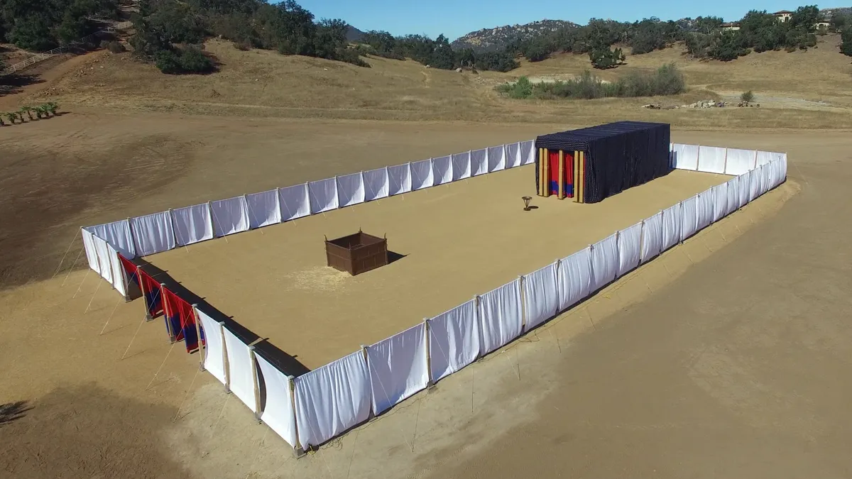 上图:杨百翰大学(Brigham Young University)按1:1的比例复制的帐幕、铜祭坛和帐幕的院子。