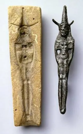 上图:迦南人铸造女神的模子。用铸模来大量生产神像,是古代中东常见的作法。各种金属或黏土造成的神像被售给私人,在家中自设神坛。