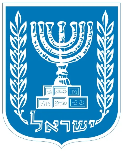 上图:现代以色列国徽是一个由橄榄围绕的金灯台,下方写着“ישראל”(以色列的希伯来语)。这个金灯台是根据提多凯旋门上的图案为蓝本设计的。