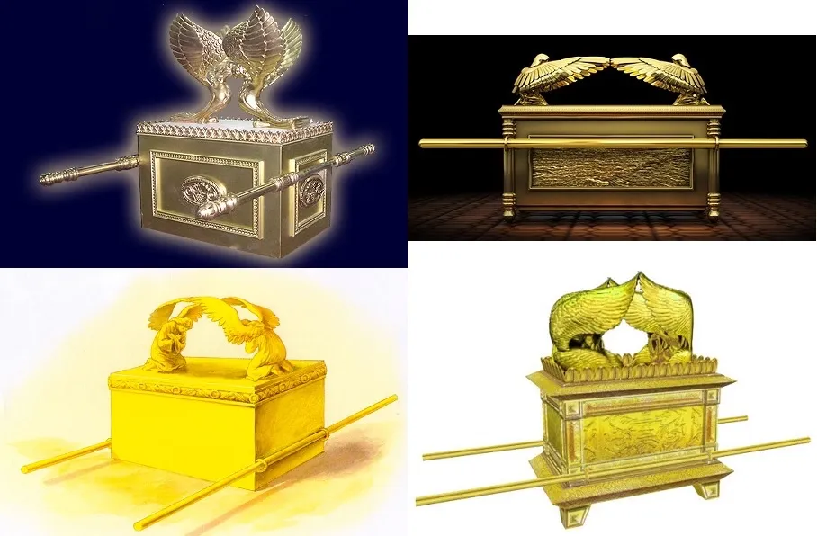 上图:四种现代人想象的约柜样式,出现了四种不同的金环位置,各有各的理由。