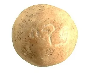 上图:刻有「比加」字样的砝码石。以色列出土了好几个主前8-7世纪的「比加」砝码,重量在5.7-6.1克之间。「比加」是最小的砝码石,表明20岁以上的以色列男人每人只交「一比加」赎罪银,是最小的数目。