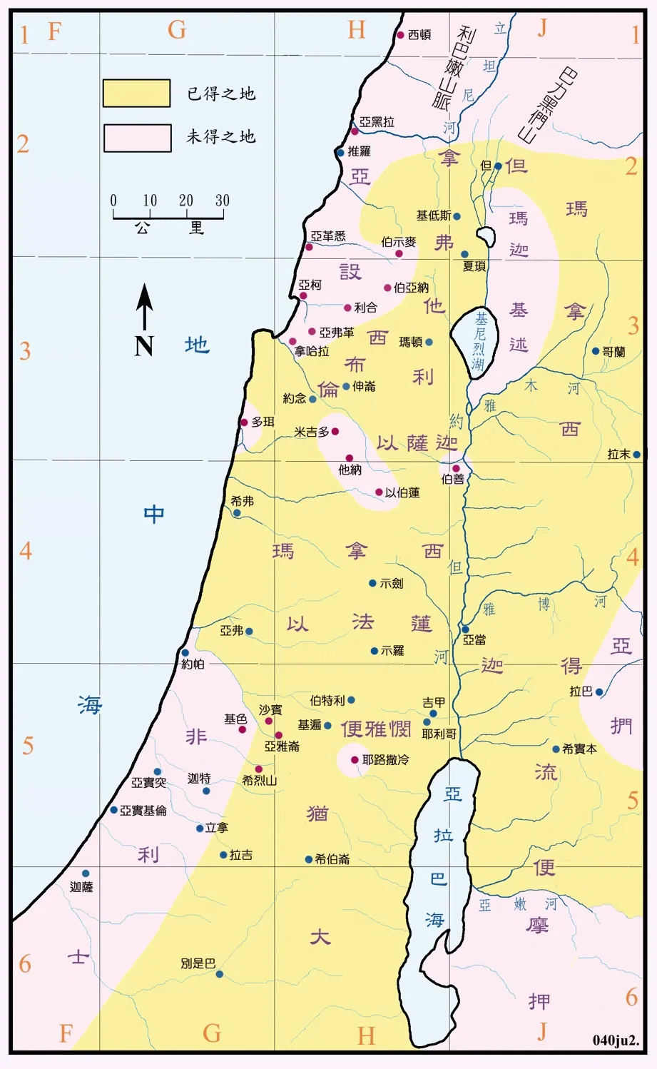 - 2:6 约书亚解散百姓,以色列人回到自己的地业,占各自的地。