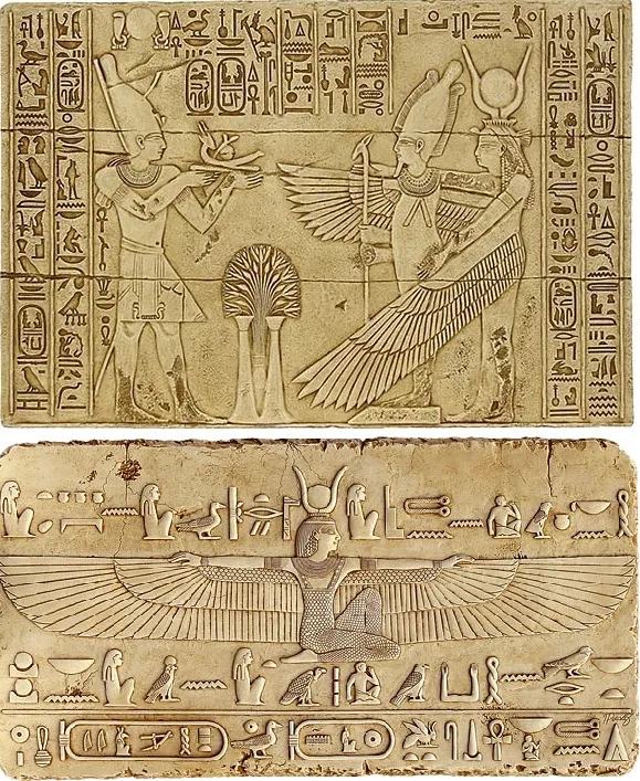 上图:主前14世纪古埃及壁画中的伊西斯女神(Isis)张开翅膀保护奥西里斯神(Osiris)。许多古代中东文化都用翅膀来比喻保护,尤其是古埃及。